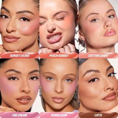 USE: – Add 3 dots of blush onto targeted areas with peanut-shaped doe foot. – Blend with fingertips for a luminous complexion. HUDA HACK: – Combine two shades for an ombre blush effect starting with three dots of the lightest shade at the center of the cheek. Add two dots of a darker shade higher up the cheekbone. HUDA’S COLOR COMBINATIONS FOR ‘OMBRE’ BLUSH: -\tCotton Candy + Strawberry Cream -\tCotton Candy + Peach Sorbet -\tPeach Sorbet + Watermelon Pop -\tStrawberry Cream + Black Cherry